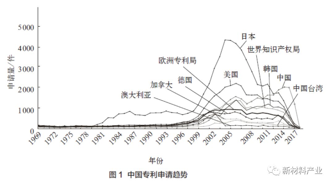 专利申请量经历2014年顶峰后,平稳发展与国际趋势保持一致,近几年专利申请量呈现逐年下滑的趋势,这可能是以下2方面原因所致:一方面是2014年专利申请量达到顶峰,研究达到一定程度的饱和,说明燃料电池技术已日臻完善,正在向商业化道路进军;另一方面可能与专利的早期申请、延迟公开制度有关。从总的发展态势来看,2000年以前燃料电池技术申请量在我国缓慢增长,2000年以后专利申请量呈现出突变式的增长态势,进入一个快速发展阶段。