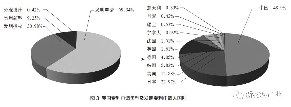 我国专利中发明专利占59.34%,其中国内机构申请的比例只占到48.9%;在发明专利国内机构的申请量仅占到国内专利总数的3成左右,见图3。