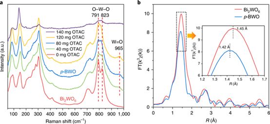 图6. P-BWO和常规Bi2WO6的Raman和XAFS表征