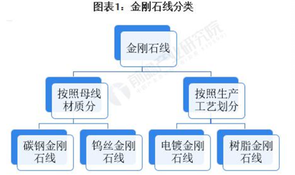 根据母线材质的不同,可以分为碳钢金刚石线和钨丝金刚石线。按照生产工艺,可以分为电镀金刚石线和树脂金刚石线。