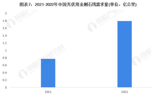 2、中国光伏用金刚石线需求量:2022年需求在1.79亿公里左右
