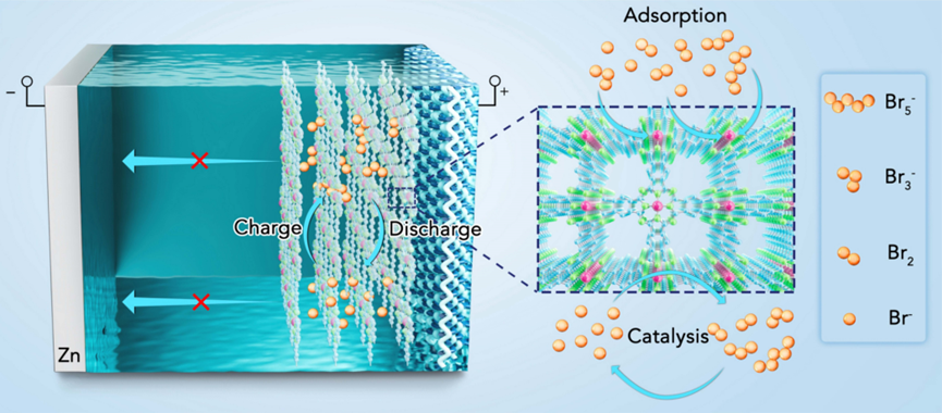 水系非液流锌溴电池(NF-ZBBs)由于其低成本、高安全性和高容量等特点,在能源存储系统方面展现出巨大潜力。然而,转化型的溴正极在关键问题上受到了严重制约,包括多溴化物形成及其穿梭效应导致的容量损失以及溴的绝缘性质导致的缓慢反应动力学。已报道的研究侧重于开发具有大比表面积、强吸附能力和高导电性的阴极宿主来解决这些问题。然而,由于吸附/宿主位点有限以及多溴化物持续的扩散,使非液流锌溴电池的应用存在极大挑战。此外,已报道的水系锌溴电池放电电压通常≤1.75 V,与理论值1.84 V相距较大。