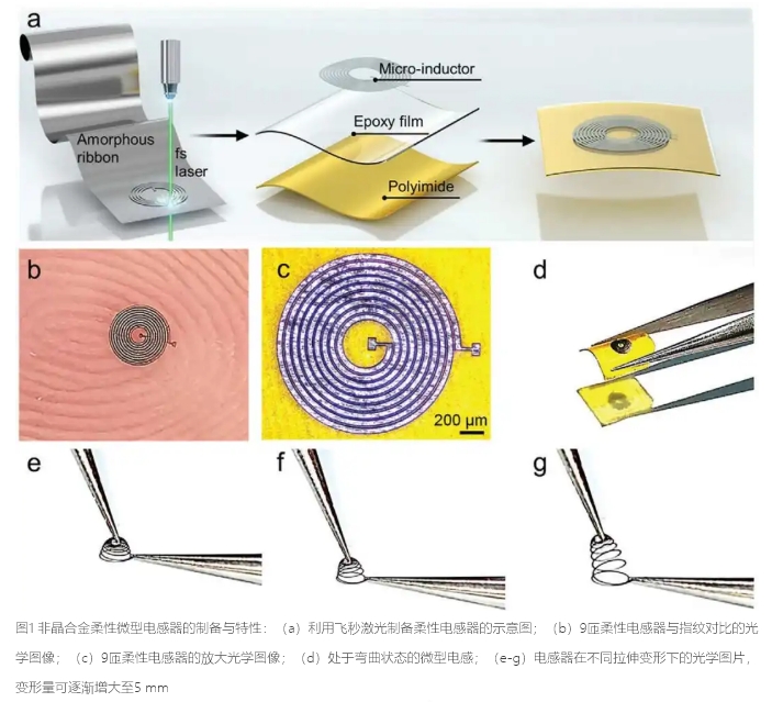 研究成果以“Flexible Mini-Inductors with Ultra-High Inductance Density Directly Cut from Soft Magnetic Amorphous Alloys by Femtosecond Laser”为题发表在Advanced Functional Materials上。(DOI:10.1002/adfm.202313355)。论文的第一作者为宁波材料所博士研究生陈亚男、张岩研究员、王吉高级工程师,通讯作者为宁波材料所王军强研究员、张岩研究员、张文武研究员,合作作者包括宁波材料所硕士研究生陈志豪、博士后曹小文、博士研究生韩飞、向明亮工程师、霍军涛研究员。本工作是和宁波材料所张文武研究员带领的激光与智能能量场制造工程团队合作完成,得到了国家自然科学基金项目、浙江省“尖兵计划”、宁波市基金和宁波材料所所长基金的支持。
