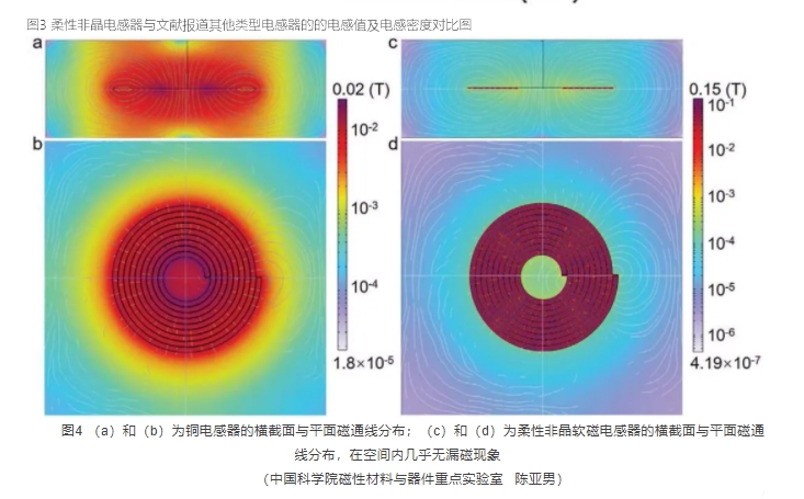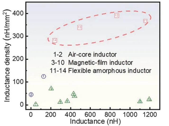 这种电感器的柔性设计不仅使其能够适应各种弯曲和折叠的应用环境,还能在极小的体积内实现高电感密度,满足微型化和轻薄化电子产品的需求。通过优化非晶软磁合金条带的磁性能和精确的线圈设计,可以实现不同范围电感值的调控。这种电感器在低频、高效电子设备中具有广泛应用潜力,不仅为非晶软磁合金提供了一种新的应用场景,也为柔性电子技术的发展提供了更多的材料选择和设计灵感。